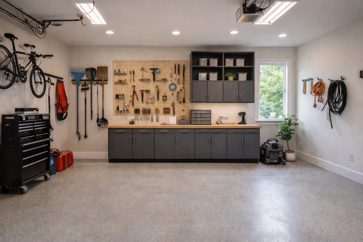 A custom garage should be more than a place to park. Pinnacle designs garages that function as true workspaces, with room for tools, storage, and hands-on projects. From built-in workbenches and organized tool storage to durable surfaces and smart layouts, every detail is planned for efficiency and long-term use. The result is a garage that works as hard as you do while staying clean, organized, and built to last.