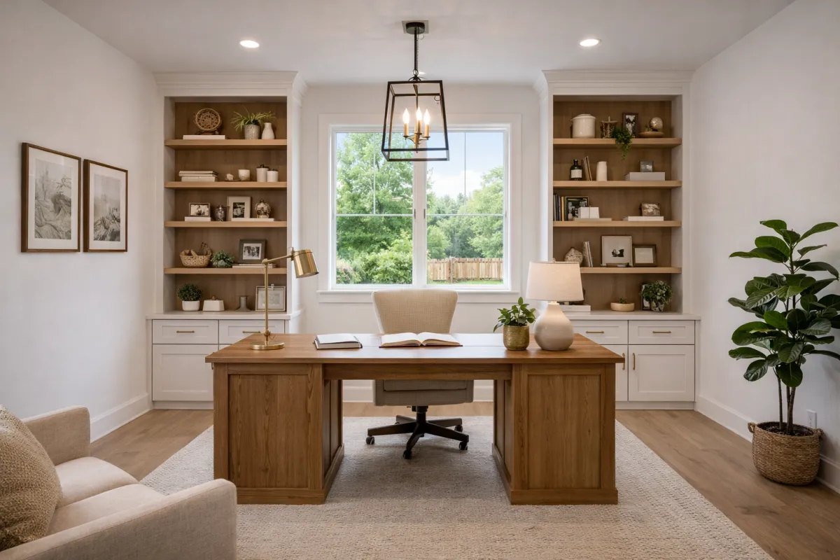 A custom home office should support focus, productivity, and comfort. Pinnacle designs home offices that are tailored to how you work, whether that means quiet privacy, built-in storage, or thoughtful lighting and layout. Every detail is planned to create a functional, inspiring space that blends seamlessly with your home while giving you a dedicated place to work efficiently and comfortably every day.